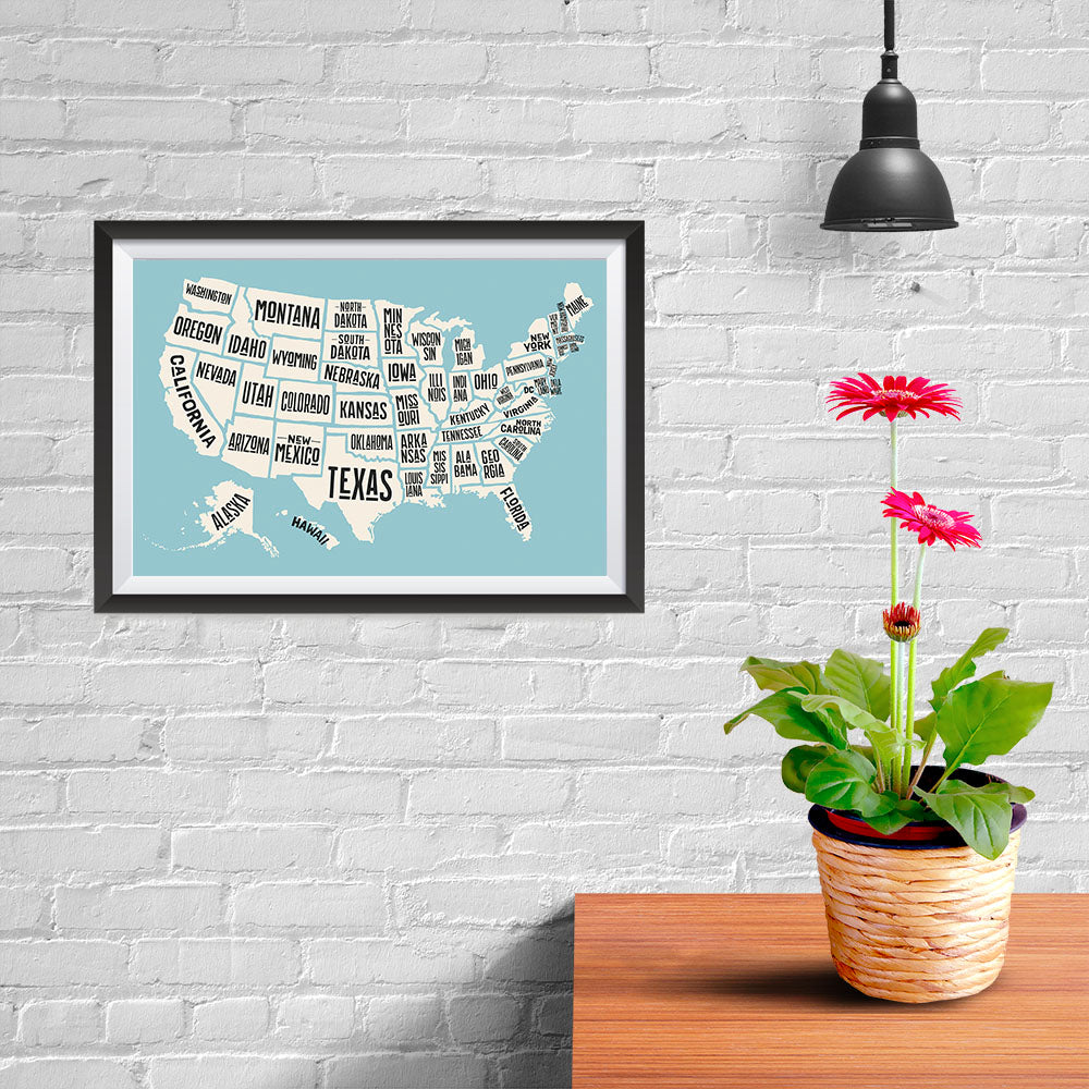 The United States of America States Map in Blue and White