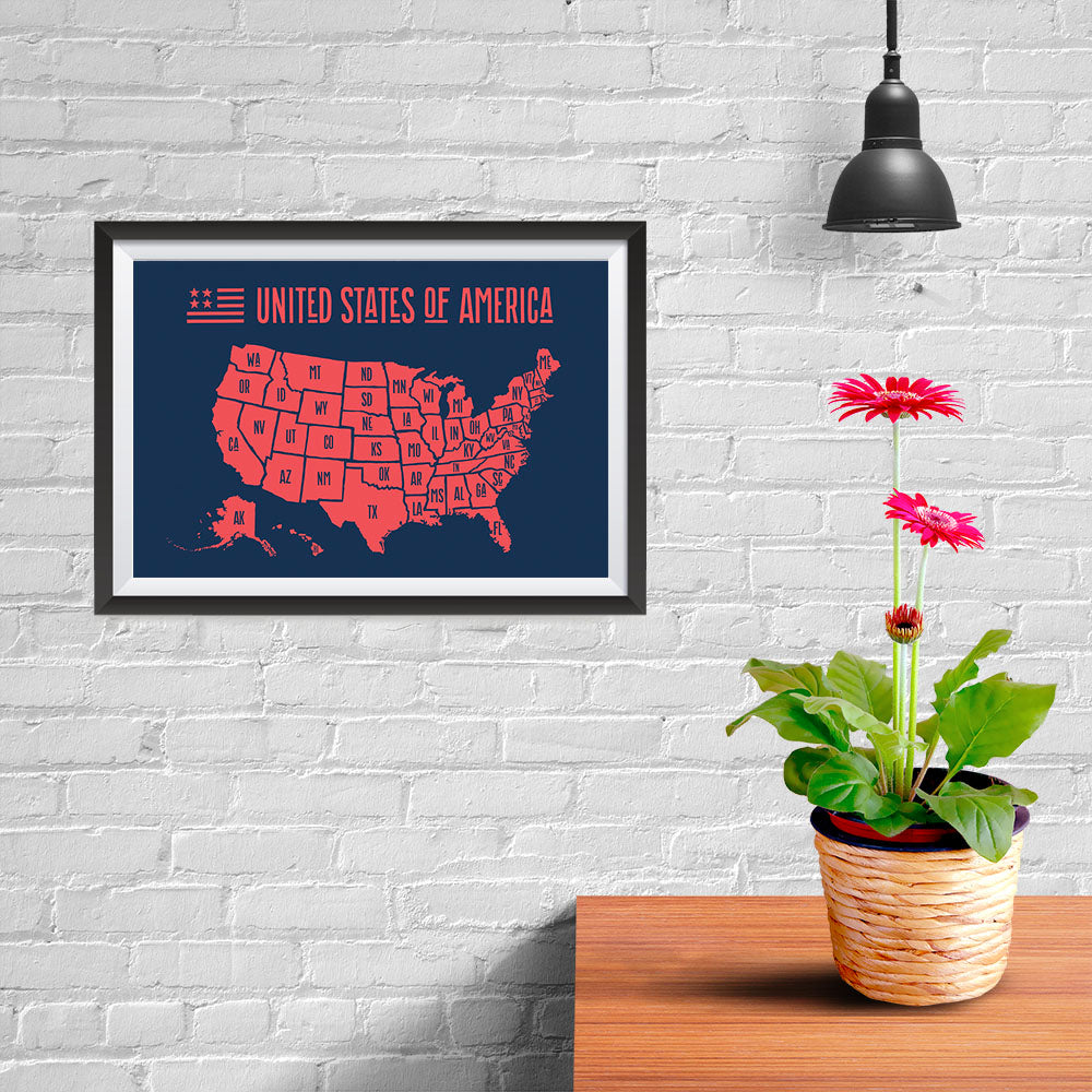 The United States of America States Map in Red and Navy